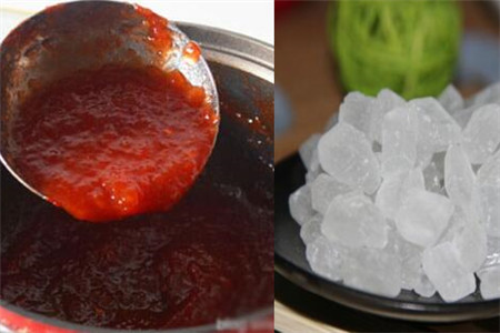 其实番茄酱和很多果酱的做法是差不多的,把番茄打碎后放在锅里,因为番茄本身有点酸,所以我们还要在锅里放一点冰糖,可以让番茄酱有甜味。小火慢慢熬就可以,不用太久,番茄酱就可以出锅了。