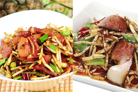 腊肉也有些多种多样的做法,首先为大家介绍其中的一种,它的名字叫做腊肉炒折耳根,腊肉炒折耳根是一道贵州菜,这道菜非常的美味,做的方法也很简单。首先我们需要准备腊肉和新鲜的折耳根,折耳根在生活中是很常见的,很多地方都有售卖,我们在购买折耳根的时候也要注意一些问题。