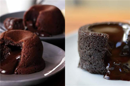 熔岩巧克力蛋糕让人比较期待的地方就在于你用餐具切开外面蛋糕壳,里面浓浓的巧克力酱会如同滚热的岩浆一般流淌下来。所以这款甜点不仅好吃还很好玩,让人在视觉上也得到了满足。