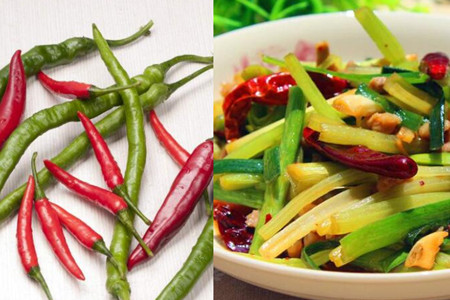 接下来就是准备辅材,准备几个小青椒和小红椒,切成偏大的丝放在一旁。将之前的芹菜洗干净然后切成段,将辣椒和芹菜都放在一个小碗中。如果可以的话,准备一些家中泡好的老酸菜,切成丝,加入老酸菜会更加酸爽,味道更好。