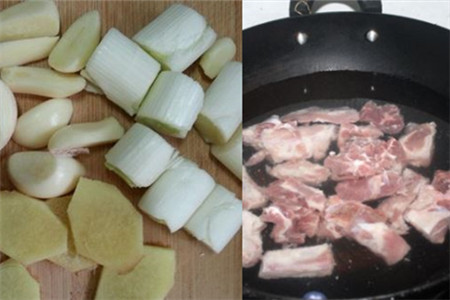 我们把大葱,生姜,大蒜切好备用。在平底锅里放一点油,等锅烧热后,把切好的葱,姜,蒜放进锅里炒香,然后把沥干的排骨倒在锅里来回的翻炒。炒好后就把排骨全部倒进砂锅里,加一点盐,香料,清水,花生,冬枣进去一起熬制。在制作过程中要注意别被烫伤了,而且在熬制的时候要在一边守着,看火候,要细火慢炖才能熬出好汤。