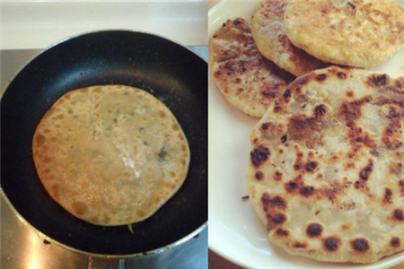 然后我们将做好的肉饼,用擀面杖擀平一些, 也可以将每个肉饼擀的薄薄的做成一张大饼,这样做出来的梅干菜扣肉饼会非常的酥脆。接着我们在平底锅中放入适量的油,放入做好的梅干菜扣肉饼,然后用小火将梅干菜扣肉饼的两面煎熟,出锅之前要检查一下梅干菜扣肉饼的馅是否熟了,熟了的话我们就可以将饼盛出来了,还可以在饼上撒上一些芝麻。