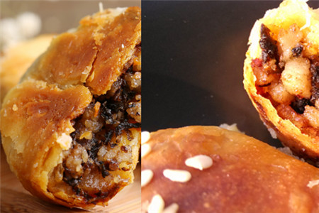 梅干菜扣肉烧饼是一种很好吃的美食,这种烧饼的整个饼都是酥酥脆脆的,口感非常好,饼中还有着美味的猪肉末和咸淡合适的梅干菜,所以味道也非常的好。梅干菜扣肉烧饼源自浙江,因为梅干菜扣肉这道名菜就是出自浙江,热爱这道菜的人,为了随时随地都能吃到这道菜,浙江人将它加入了烧饼里,所以就制作了这道美味的小吃。
