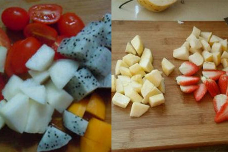 人们需要将自己喜欢的水果切成小块,这样比较容易进食,并且能够使水果沙拉看上去更加美观。其次加入蔬菜,将蔬菜手撕即可,之后再挤入一定量的沙拉酱,番茄酱等酱料。再者如果人们喜欢甜口味的话,还可以适当的加入蜂蜜,能够帮助人们提升口感。那么完成这些步骤之后,一道简单健康的美食即制作完成了,人们就可以好好享受水果沙拉的美味了。