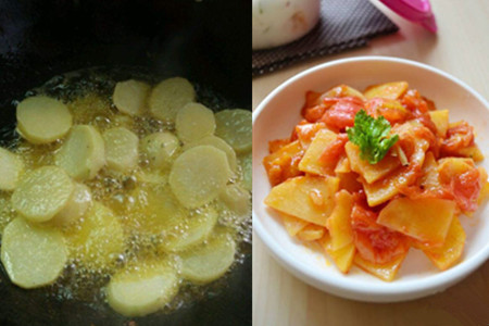 西红柿炒土豆片。