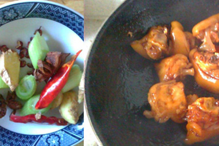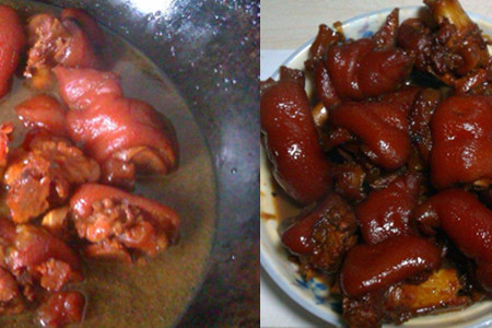 做的时候小心不要把外皮烧糊了,等到外皮变成焦黄色,就可以填入适量的清汤。猪蹄是一种不容易熟的食物,所以做的过程要有耐心,撒一些精盐和五香粉大火炖煮。不要害怕会不会把猪蹄做老了,可以多加一些水,大火烧开之后用中火慢炖。