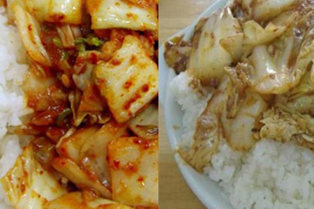 等到味道翻炒出来之后,就可以放白菜和洋葱了。白菜放进去之后要尽量多翻炒,以免粘在锅底,发出难闻的焦胡的味道。这时候如果觉得慢的话,可以加点水盖上锅盖焖一会。但是一般白菜很容易熟,就不用这样。翻炒两三次之后,可以尝一下菜帮子,之后就可以起锅了。把冒着热气的酸辣白菜浇到盛好的米饭上面,这道菜就做好了。