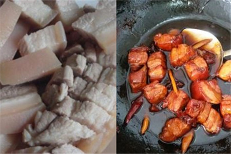 红烧肉又被称为东坡肉,东坡肉相传是由北宋词人苏东坡所创。在做红烧肉之前,我们需要准备好五花肉,料酒,香葱,冰糖,酱油,盐,大枣,然后把材料洗干净切好备用。把买回来的五花肉切成小块,大小,厚度要适中,这样容易煮熟,如果厚度相差太大的话,煮的时候一些肉熟了,然而一些肉还没有熟。我们把切好的肉放进炒锅中烧开,然后捞起来沥干。