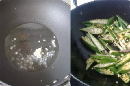 然后我们将买回来的新鲜秋葵用水冲洗干净,洗的时候要注意把秋葵表面的绒毛用手搓掉,然后将秋葵用刀斜着切成两段或者三段。然后我们在锅中倒入适量的油,将蒜泥放入锅中,将蒜泥炒香,然后放入切好的秋葵,将它们翻炒均匀。在秋葵差不多炒熟的时候,我们将处理好的木耳放入锅中,加入适量的盐和酱油。