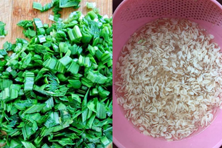 1、准备的食材有豆腐皮、韭菜、鸡蛋、虾米、面粉。