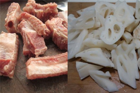 我们先把排骨切成小段,切成小段的排骨长度大小尽量均匀,这样方便在煮的时候一起熟,以至于不会浪费太多的时间。我们烧一点热水,用大火把它烧开,再把切好的排骨全部放在开水中,把排骨多血沫去掉,然后捞起来沥干后再洗几遍。将莲藕的皮用刀刮掉,刮的时候尽量小心一点,不要把手割伤了。再把莲藕切成两半洗干净,然后再将莲藕切成小坨。