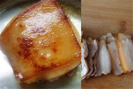我们把五花肉捞起来沥干,将准备好的生抽均匀的抹在五花肉上,让每块五花肉都均匀上色。这时我们也可以把梅菜干拿出来,放在水里泡几十分钟。然后再准备一口炒锅,把植物油倒入锅中,等锅烧热后,开中火把五花肉放在锅里炸,炸的时候一定要注意了,不要把五花肉给炸糊了。等五花肉冷却后,把它切成薄片,厚度一定要适中,不要切得太厚。