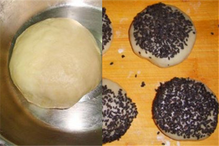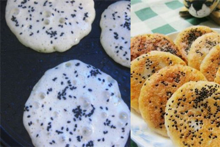 我们取适量的面团,然后揉成圆形,再用手压扁沾一点黑芝麻。我们再轻轻的把它放在锅里,以免烫伤。两面要来回的煎,直到两面都煎成金黄色为止,然后就可以出锅了。黑芝麻中有维生素E,对人体的生育能力有促进作用。黑芝麻也有药用价值,可以降血压,如果有高血压的人,是可以食用黑芝麻的。但是黑芝麻不能食用太多,它有副作用。