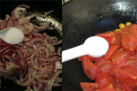 我们准备一口炒锅,加入适量的橄榄油,再把切碎的洋葱倒入锅中翻炒,等洋葱炒成焦黄色时,就可以把蒜泥加进去翻炒。等闻到一股香味儿后,就可以把西红柿倒进去,用小火炒,然后用锅铲压西红柿,直到西红柿炒出汁来就添加适量的水。然后再把洗干净的海鲜,还有白葡萄酒,盐,黑胡椒一起加进锅中,等海鲜全部炒熟后,就可以下面条了。