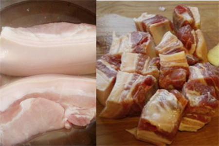 在选购好了新鲜的五花肉之后,我们就可以开始正宗五花肉的制作了。首先,我们将买回来的新鲜五花肉从皮往下,切成差不多的方块,可以将五花肉的底部切断,也可以保持它们的连接,然后在锅中加入适量的水,然后放入水中,盖上锅盖,煮五分钟,然后将煮好的肉从锅中捞起来,洗干净放在碗中备用。
