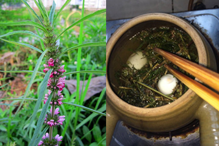 将十克益母草和十五克当归清洗干净,沥干水分后装进棉布的调料带,没有袋子的可以直接放进煲里煮。将一个鸡蛋清洗干净以后,连壳放进煲内同煮10分钟左右,等到鸡蛋完全熟透捞出剥掉蛋壳,放进锅内继续煮十分钟。将益母草和当归捞出以后,放入适量红糖和玫瑰花片小火烹煮时分钟即可。