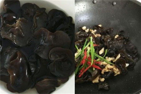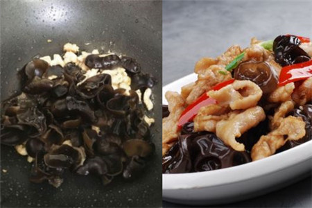等木耳泡好后,就可以把木耳捞起来沥干。我们等锅里冒出香味后,就可以把木耳加进去一起翻炒。等木耳和肉炒熟后,就可以依次加入酱油,盐,鸡精,然后翻炒均匀后就可以盛在盘子里了。木耳中含有大量的铁,瘦猪肉中含有也含有丰富的铁,它们搭配在一起炒,营养是非常高的。木耳炒肉有滋肝养血,生津润燥的作用。