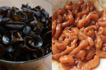 我们都知道木耳的吃法比较多,比较常见的就是木耳炒肉,只要把它需要的食材准备好,就可以在家里自己试着做一下,其实还是挺简单的。需要的食材有木耳,瘦猪肉,大蒜,生姜,植物油,酱油,盐,料酒。我们先把瘦猪肉洗干净,尽量用热水清洗,然后再把瘦猪肉切成薄片,装在一个干净的碗里。再把准备好的盐和料酒加进去,搅拌均匀后腌制20分钟。