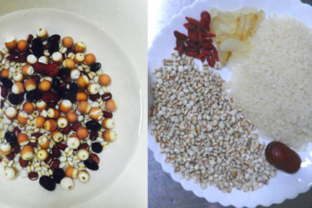 首先,你需要准备好制作此养生粥所需的各种食材,你需要包括薏米、赤小豆、糯米、无心莲子。
