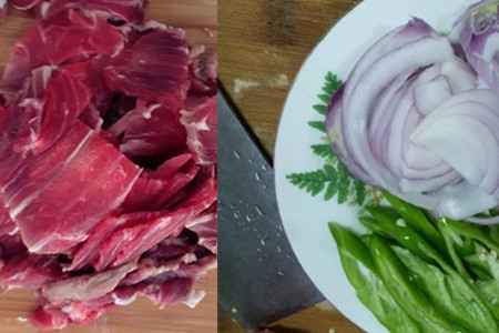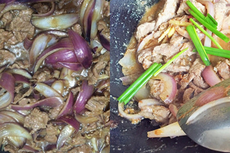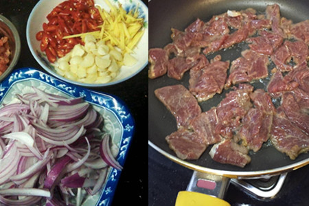 翻炒两分钟左右,牛肉就会熟六分了,这个时候把洋葱倒进去,加一些精盐、胡椒粉、鸡精,大火翻炒至洋葱变软。可以加少量清水,不要把菜做糊了,大概十分钟左右,这道菜就做熟了,牛肉趁热吃,才不会有膻味。