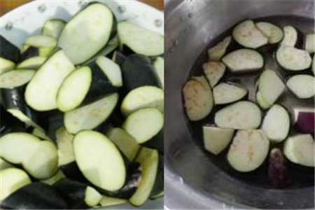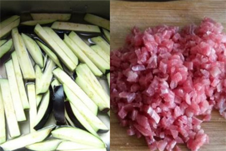 我们在挑选茄子的时候,可以挑选一些表面光滑的,不要去选那些看起来非常大的茄子,很多都是打了农药或者催生素。所以我们把茄子买回来后,一定要把它放在水里泡几个小时。泡好后,我们拿出来把它对切成两半,然后再用刀斜着切。可以先烧一点热水,然后把猪肉洗干净,切成薄片,然后再用刀剁成末。在猪肉馅里加入料酒和胡椒粉,腌制半小时。