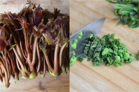 想要做好吃的香椿炒鸡蛋,首先我们需要选择好新鲜的香椿,香椿的选择我们需要注意以下几点:首先我们要注意在每年的四月份购买香椿,这时候的香椿是比较嫩的,五月份之后就不要买香椿了,这个时候的香椿基本上已经老了,根部也会很硬,我们在选择香椿的时候也要注意选择叶片发红的香椿,这样的香椿比较嫩。