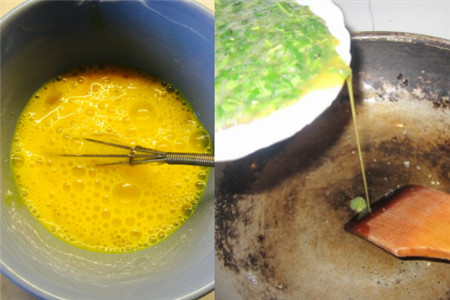 然后我们准备两个鸡蛋,将鸡蛋打在碗中,依照自己的口味加入适量的盐,用筷子或者打蛋器将它们调匀,再加入切好的香椿还有适量的辣椒,将它们搅拌均匀。接着我们在锅中加入适量的油,等油热之后,我们将调好的香椿鸡蛋也放入锅中,然后将火开成中火,将鸡蛋香椿不断的翻炒,炒的时间不宜过长,等到香椿差不多没有水分之后,香椿就差不多熟了。