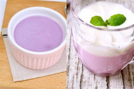 如果是家里面有酸奶的话,我们可以把酸奶倒在紫色的布丁上面,然后在酸奶上面放一点鲜艳颜色的水果,再加上布丁的外表是玻璃,所以整个布丁看起来会非常的梦幻,超高的颜值让人非常的舍不得吃它。