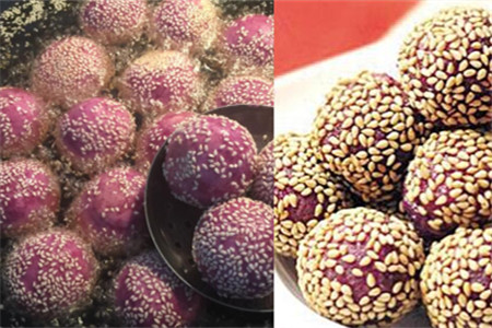 等待紫薯球被炸变色了以后,其实就已经差不多了,因为紫薯之前是已经蒸熟了的,所以不用炸太久的时间。紫薯虽然营养,但是紫薯球它是油炸食品,所以一次性还是不能够吃太多的紫薯球,影响消化。