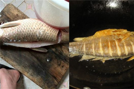 我们把买回来的草鱼处理干净,首先我们先要把草鱼的鱼鳞去掉,在处理鱼鳞的时候一定要小心,不要溅到身上。还有就是一定要把鱼的内脏全部取出来,鱼的内脏尽量不要食用,因为现在很多的鱼都受到水污染的影响,吃了对身体不好。把鱼处理干净后,就可以把锅先热,再加入适量的油,然后再把鱼放进锅中,用中小火煎,把鱼的两面煎黄为止。