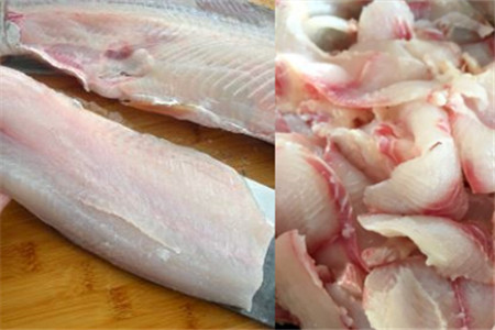 先把鱼处理干净,然后把头砍下来,然后再把鱼砍成两半,用刀斜着切成鱼片,中间的鱼骨可以砍成段,然后放在一个大的碗里。我们把需要的食材洗干净,切好,白菜只要叶子部分。我们需要把鱼片腌制好,需要放料酒,盐,胡椒粉,蛋清,生粉,油,然后将它们和鱼片搅拌均匀,腌制半小时。