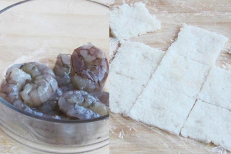 锅内重新放入适量底油烧热,加入适量番茄酱煸炒,炒香之后,再兑入适量清水。接着将豌豆、姜片和炒过的虾仁倒入锅中,调入适量盐和白糖,炒匀,略煮两分钟。两分钟后,兑入适量水淀粉,煮至汤汁浓稠,浇在控好油分的锅巴上即可。米饭放在保鲜膜上,用力压实,避免下油锅炸制中途散掉。