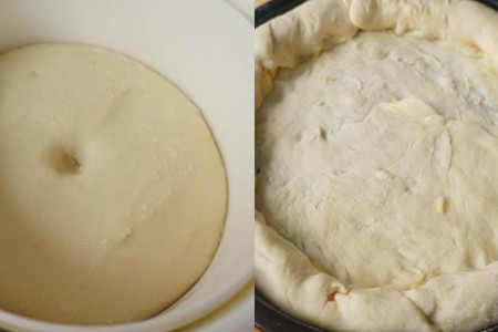食材:高筋面粉160克、火腿80克、豌豆80克、西葫芦30克、芝士100克、青椒1个、洋葱半个、清水、酵母、黄油、披萨酱、番茄酱、白糖、盐。