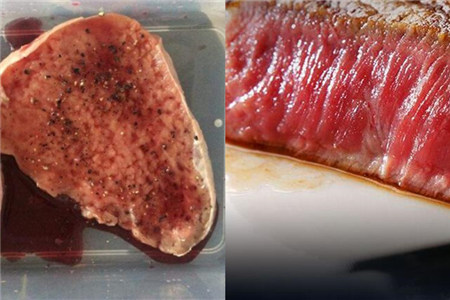 正常的牛排厚度应该在2厘米左右,网上出售的牛排一般都只有1厘米的厚度,甚至还有提前加入黑胡椒等材料腌制的版本。这些牛排显然都是不太合格的。因为太薄的牛排是没办法做出稚嫩的口感,因为加热就熟了,而且太薄的牛排在煎完后也不会饱含汁水。