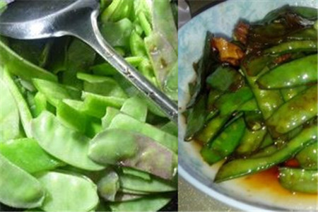 我们只需要把买回家的扁豆洗好了干净,然后把葱切碎。然后把炒锅烧热加油,再把葱花放进锅里爆香。爆香葱花后,就把扁豆放在锅里,只需要快速的翻炒就行,直到把扁豆炒变色。然后把之前炒好的红烧肉全部放在锅里,和扁豆一起炒。我们把肉和扁豆翻炒均匀后,就放一点盐和水在里面,盖上锅盖,开小火慢慢煮。
