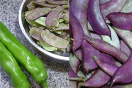 我们在挑选青椒的时候可以选不辣的,不然炒出来后,难以下咽。还有就是先把青椒的蒂去掉,再用水把青椒里面的籽洗掉,然后切好待用。把扁豆的筋去掉,然后用手掰成两半,然后放在清水里浸泡一会儿,然后再捞起来沥干。我们在锅里烧一点水,等水烧开后把扁豆,盐,油放在锅里焯几分钟。
