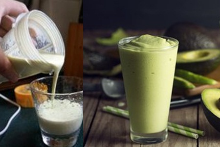 牛油果是这几年新兴起的新型水果,其香味浓厚,营养价值也很高,富含蛋白质、脂肪、维生素。今年中秋家里也买来牛油果尝尝鲜,一开始觉得味道有点奇怪,但越吃越好吃,有点榴莲的韵味。家里的牛油果买多了,所以一时兴起做起了奶昔。首先取出牛油果的果肉,放于料理中,倒入低脂纯牛奶,搅拌均匀即可,放入冰箱冷藏口感更佳。