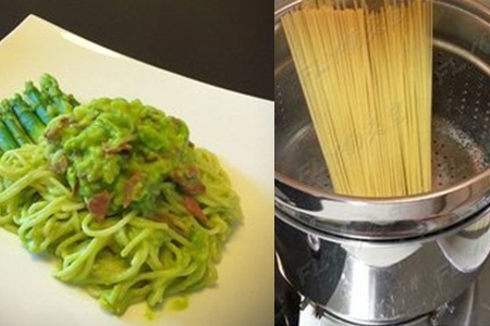 牛油果也可做成美味佳肴,如牛油果意面。首先,将牛油果果肉取出,和蒜瓣一起放于料理机打成泥备用。然后煮面,煮一锅开水,将意面放进去,迅速搅拌,直到意面变熟。捞起,放入冷的开水中冷却一下再捞起,意使面更加得爽口。在面上滴加少许橄榄油,倒入牛油果泥,搅拌均匀,即可食用。