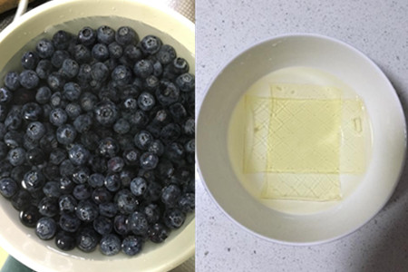 1、准备的食材有牛奶、蓝莓、吉利片。