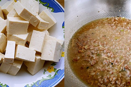 榨菜切成小丁,用清水浸泡一段时间,去掉一些咸味,不然榨菜咸味太重,会影响口感。肉末尽量炖细一些,这样更加容易入味,口感更加细腻。豆腐块放入开水中焯烫,往开水中调入适量食盐,可以使得豆腐块入底味。肉末加适量清水炖煮,是为了蒸的时候有汤汁。