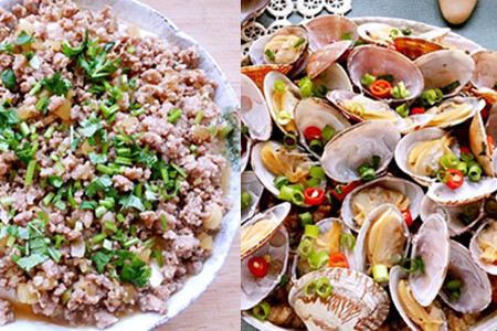 煮开之后,将肉末浇在豆腐块上,使肉末完全覆盖住豆腐块。把香葱末撒在肉末上,再码上清洗干净的蚬子,撒上红椒末装饰一下。蒸锅里加入适量清水,开大火煮沸,放入装有食材的盘子,加盖蒸五分钟,蚬子开口即可熄火。