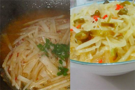 我们都知道白萝卜的吃法有很多,我们还可以做酸辣白萝卜丝。做酸辣白萝卜丝需要的食材有白萝卜,青椒,红椒,鸡精,盐,植物油,大蒜,醋。先把买回来需要洗的食材洗干净,然后再把白萝卜,青椒,红椒切成丝,蒜切碎。我们先把油锅烧热,把蒜倒进锅中炒香,然后再把切好的白萝卜丝倒进锅中翻炒一会儿。