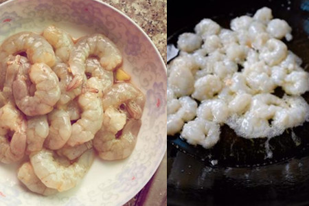 2、把从超级市场买回的新鲜的虾仁用剪子剪去虾头,再用手剥掉虾壳,用牙签剔除里面的虾线。再放在流水下冲洗一下,控干水分装在一个小碗之中,往里逐一加入些许的料酒、食盐、生抽进行抓均,摆在一旁腌制一会。