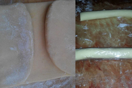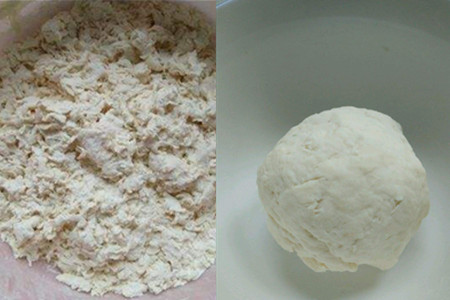 2、先将适量的低筋面粉倒入一个大盆之中,再往里加上少量的高筋面粉。把准备好的黄油和酥油放在面粉中,用手画圈的方式把酥油和黄油揉搓至软。紧接着把适量的清水倒入其中,先用筷子进行混合搅拌成絮状。再双手揉搓成面团,要用手掌的根部来揉搓面团。揉搓一定要揉至面团没有空隙为止,且要表面光滑。