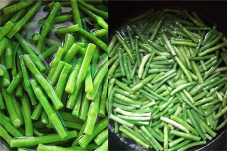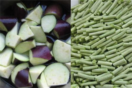 我们还可以做茄子炒豇豆,这道家常菜的做法也不难,而且味道极好。做茄子炒豇豆,需要的食材有豇豆,茄子,油,盐,大蒜,胡椒粉,白糖,小红椒,鸡精。我们先把所有的食材准备好,把豇豆洗干净,然后摘成段。然后我们再把茄子洗干净,切成条,再准备一盆清水,把茄子泡在水里,这时候我们都会发现,泡过茄子的水会变色。