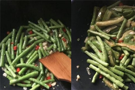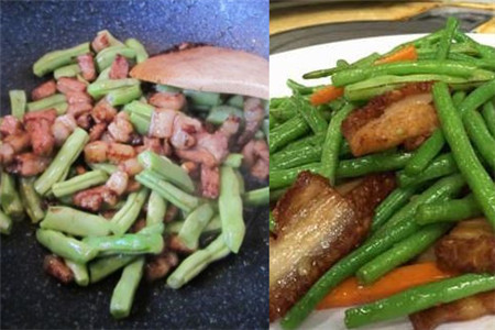 我们把腌制好的肉全部倒在热锅热油里,然后快速的翻炒均匀。炒一会儿后,把酱油,生姜一起加进去,然后翻炒均匀。我们再把豇豆倒在锅里,这时候开小火就行了,等豇豆炒变色后,就加入适量的盐,然后翻炒一下。再把大蒜,葱,水一起放在锅里,盖上锅盖煮一会儿。等豇豆煎熟后,我们就可以把火关了,然后盛在盘子里就可以了。