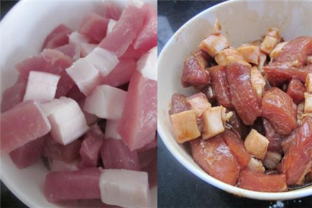 我们把买回来的豇豆先浸泡在水里,然后再捞起来沥干,再把它切成段备用。我们把生姜,大蒜,葱洗干净,然后把生姜和葱切成丝,把大蒜切成末。把买回来的肉洗干净,然后把它切成丝,装在一个干净的碗里,往碗里添加料酒,盐腌制。一般我们是腌制半小时左右,这样煎起来才好吃,但是还是要根据自己的口味来。