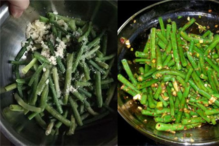 煮的时候一定要注意,一定要把豇豆煮熟了,不然吃了有可能会拉肚子,等豇豆煮熟后再把它捞起来沥干,一定要等豇豆凉了以后才能进行下一步。豇豆凉了以后全部倒进盘子里,然后放入适量的盐,鸡精,大蒜,味精,白糖,辣椒油,然后搅拌均匀。准备一个干净的盘子,把它全部存在盘子里,再准备一碗稀饭,就可以开动了。