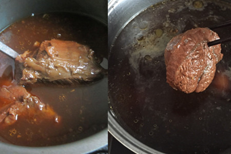 倒入锅内后,用压力锅炖四十分钟,然后把牛肉捞出来放凉,用刀切成片就可以食用了。卤牛肉味道香浓,而且不油腻,所以热量不是很高,我们可以放心食用。