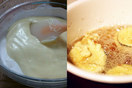 做好差不多成型的茄盒之后我们还要调好茄盒表面的面糊。我们取出适量的面粉,在面粉中加入适量的鸡蛋和淀粉,将它们调匀,然后在锅中加入适量的油,等油热之后,将茄盒在面糊中裹一圈之后,放入锅中炸,因为茄盒中有肉馅,所以炸的时候要多炸一会儿,直到茄盒中的肉馅炸熟,我们才可以将茄盒从锅中盛出来。